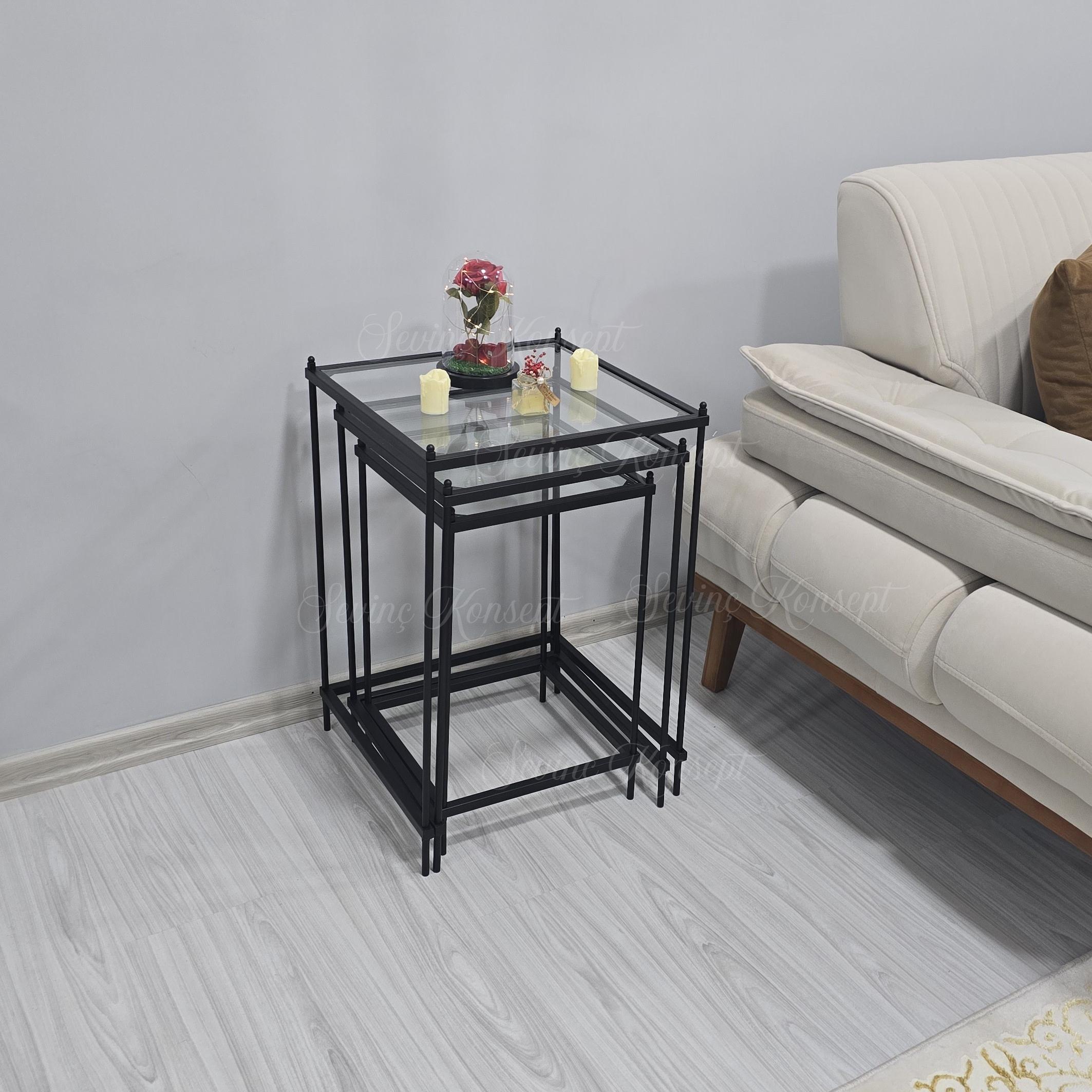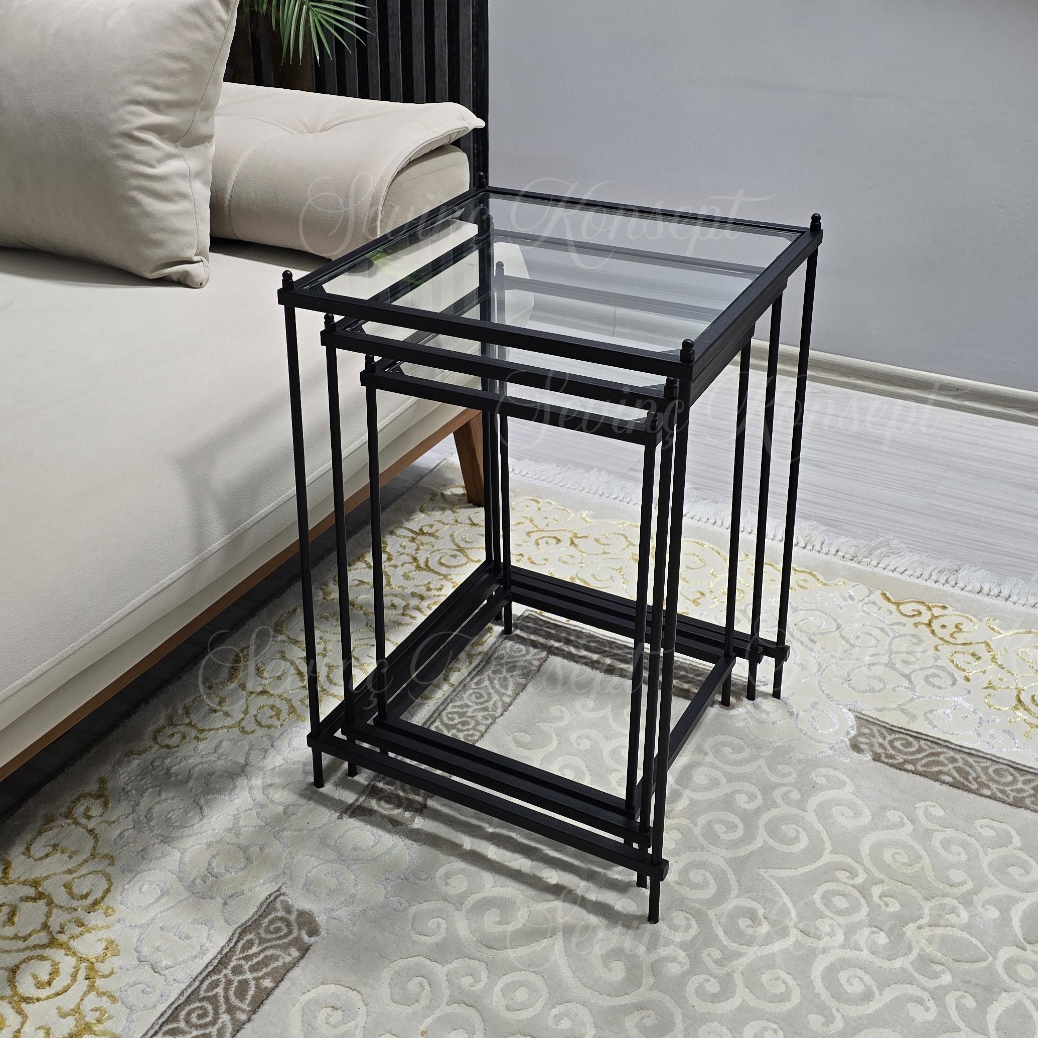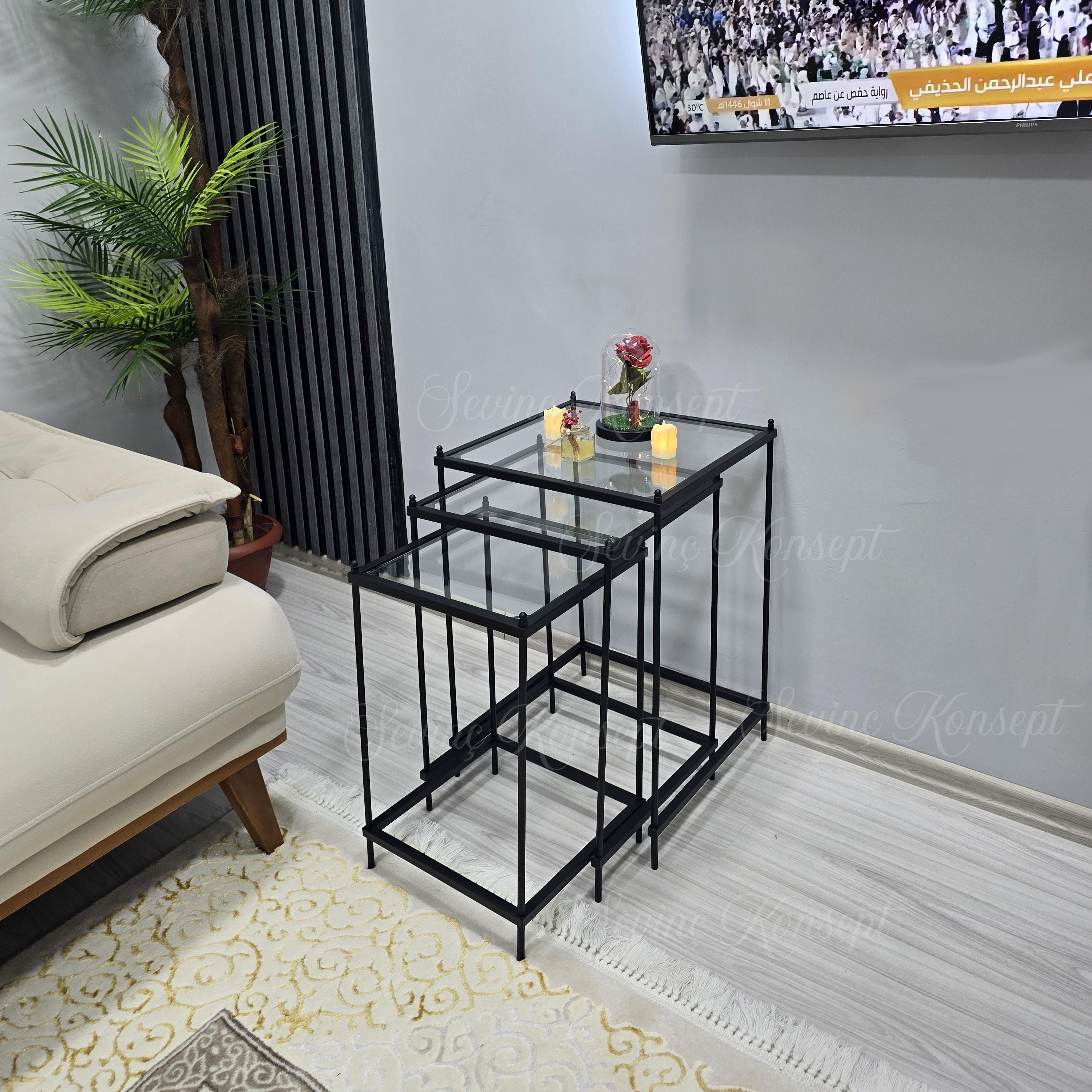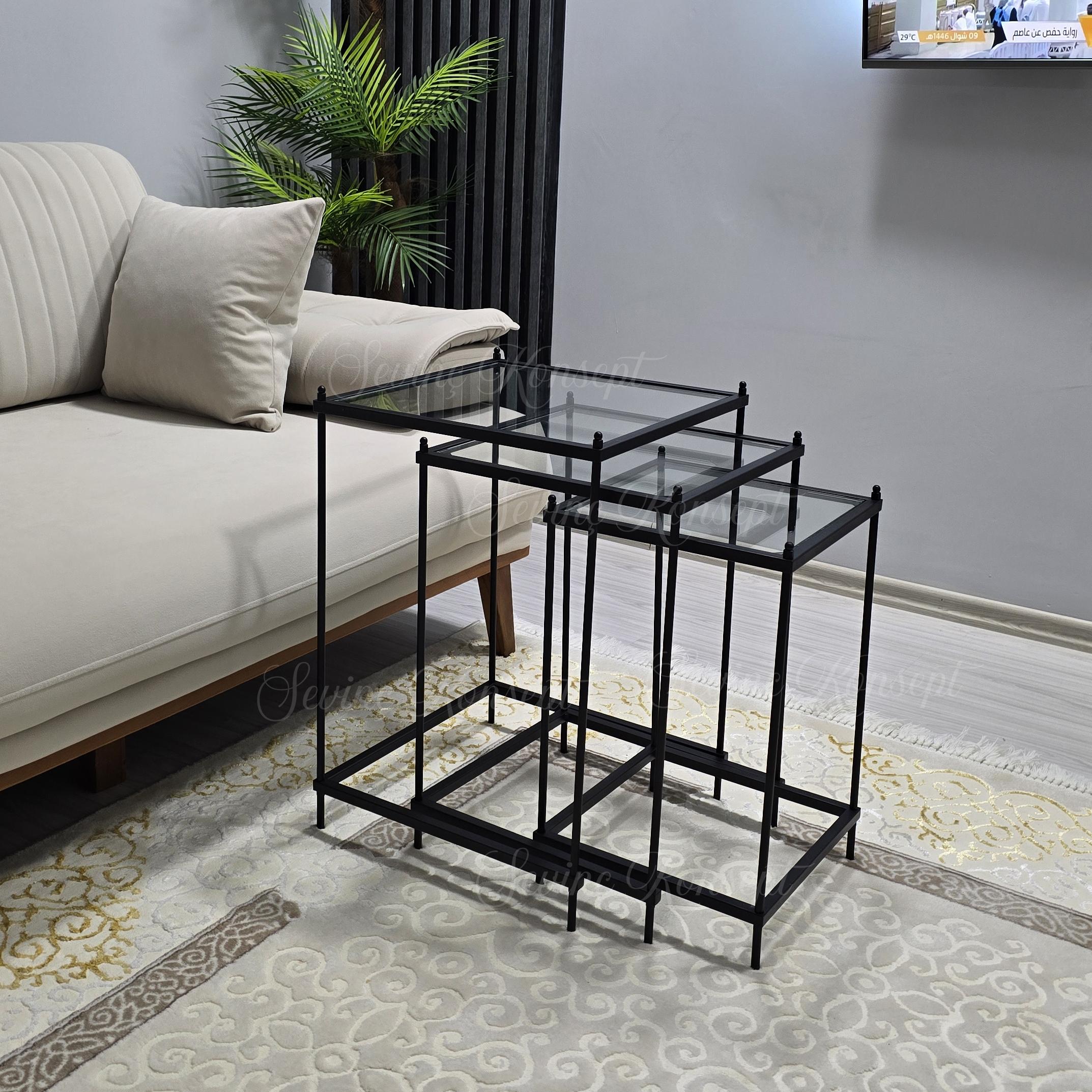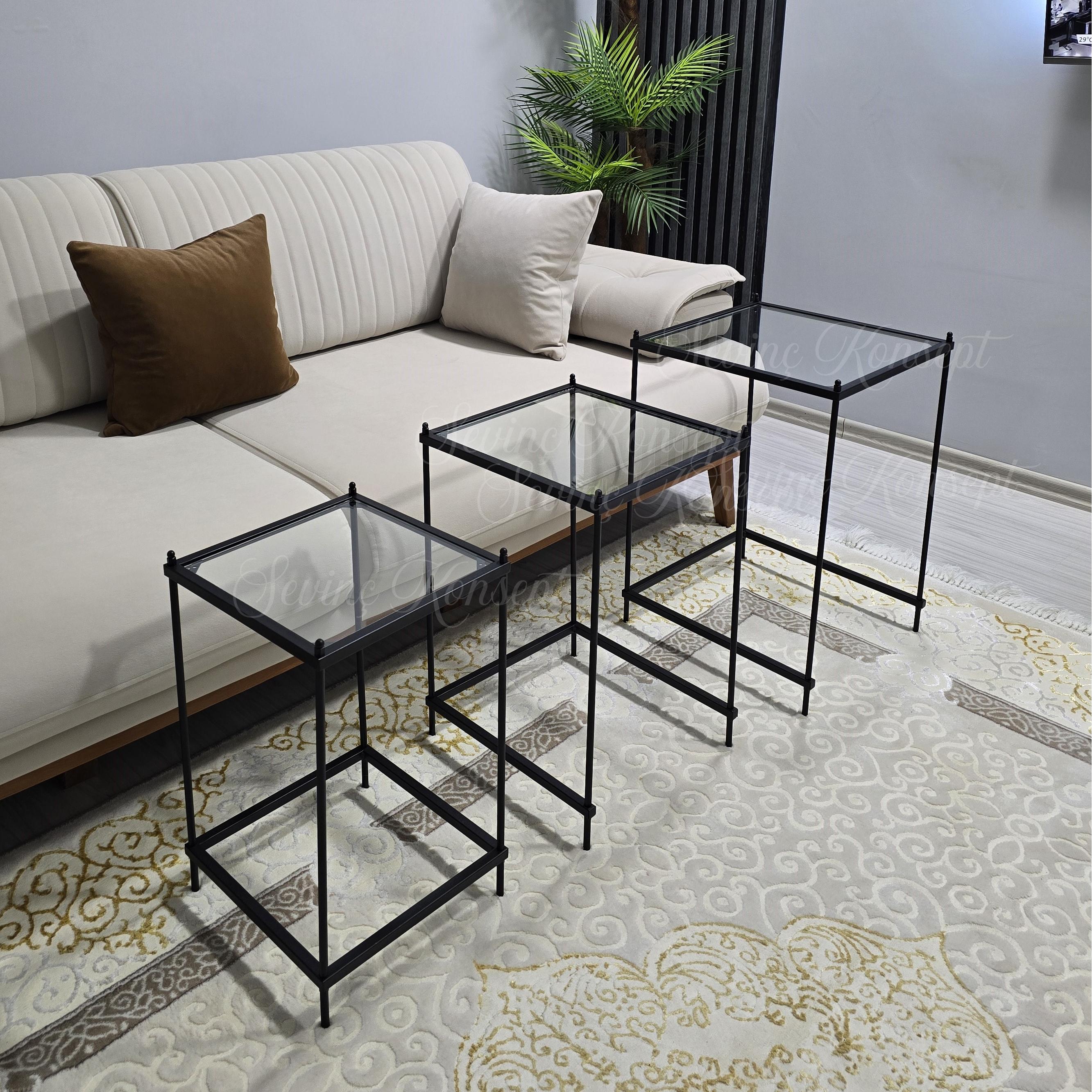 Zerafetiyle Misafir Odalarınıza Tarz Katacak Olan 3 lü Vera Black Şeffaf Camlı Zigon Sehpamız Şimdi 3 farklı Renk ve 2 Farklı Cam Seçeneği İle Stoklarımızda...