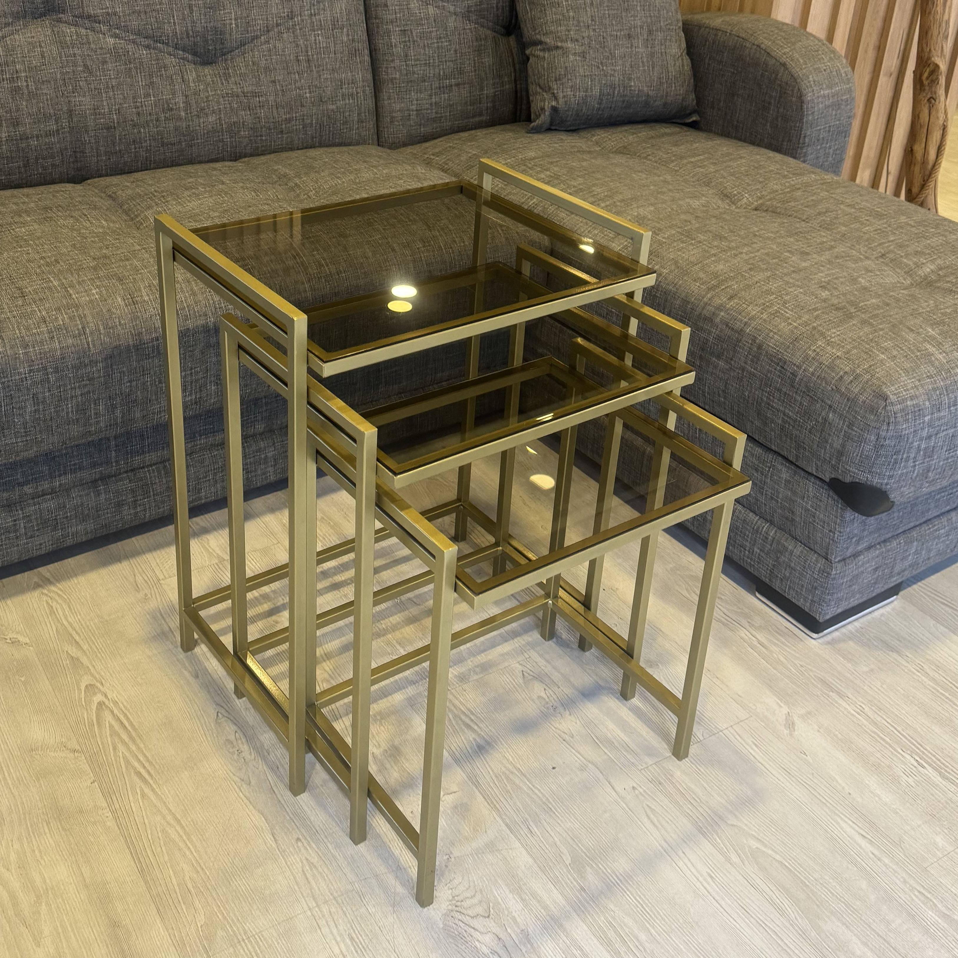 - 3'lü GOLD Rana Sehpa, BRONZ Camlı, Çok Amaçlı Zigon Sehpa, Yan Sehpa, Metal Sehpa ;