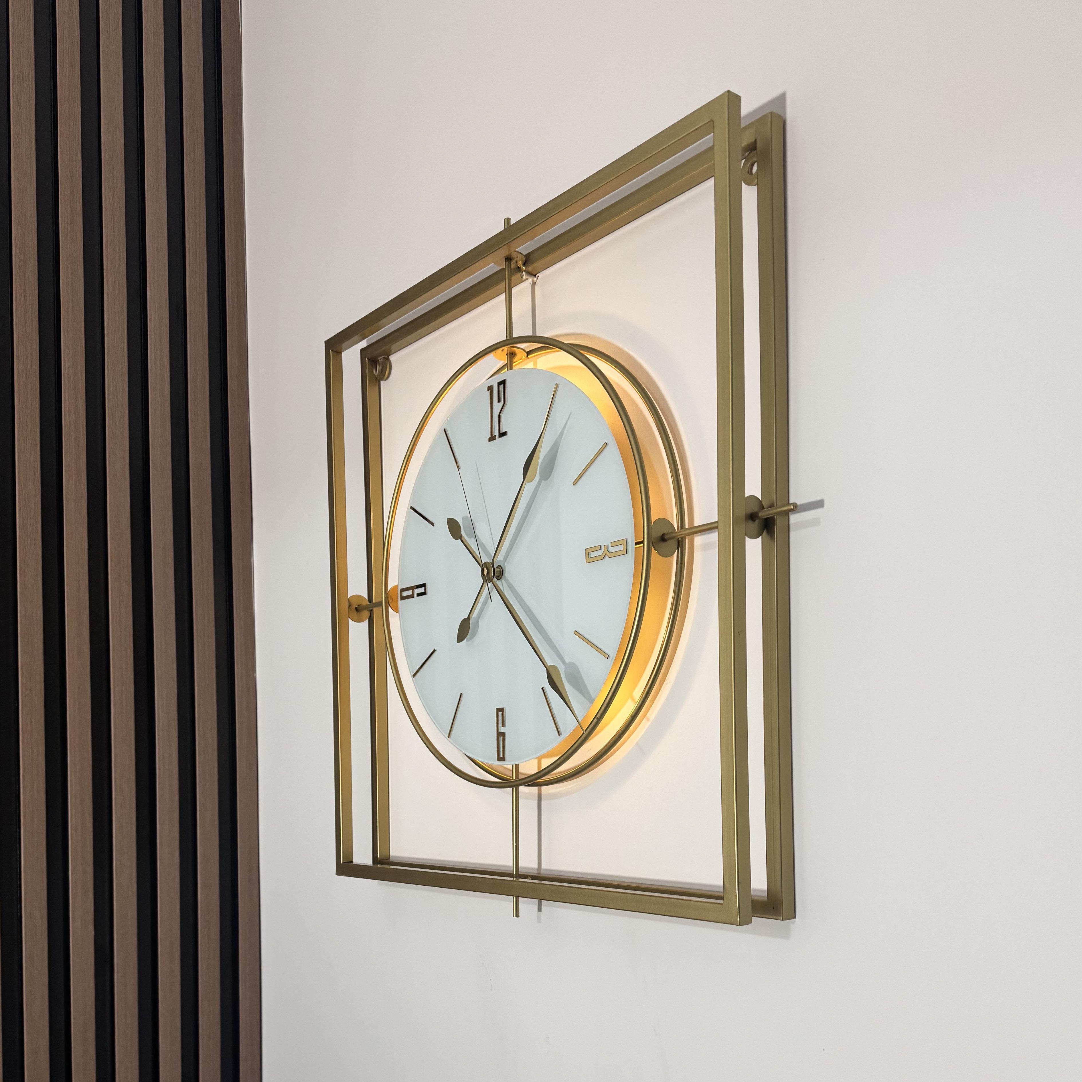 Gold Kristal Square 60 cm Modern Dekoratif Ev Ofis Salon Metal Duvar Saati,