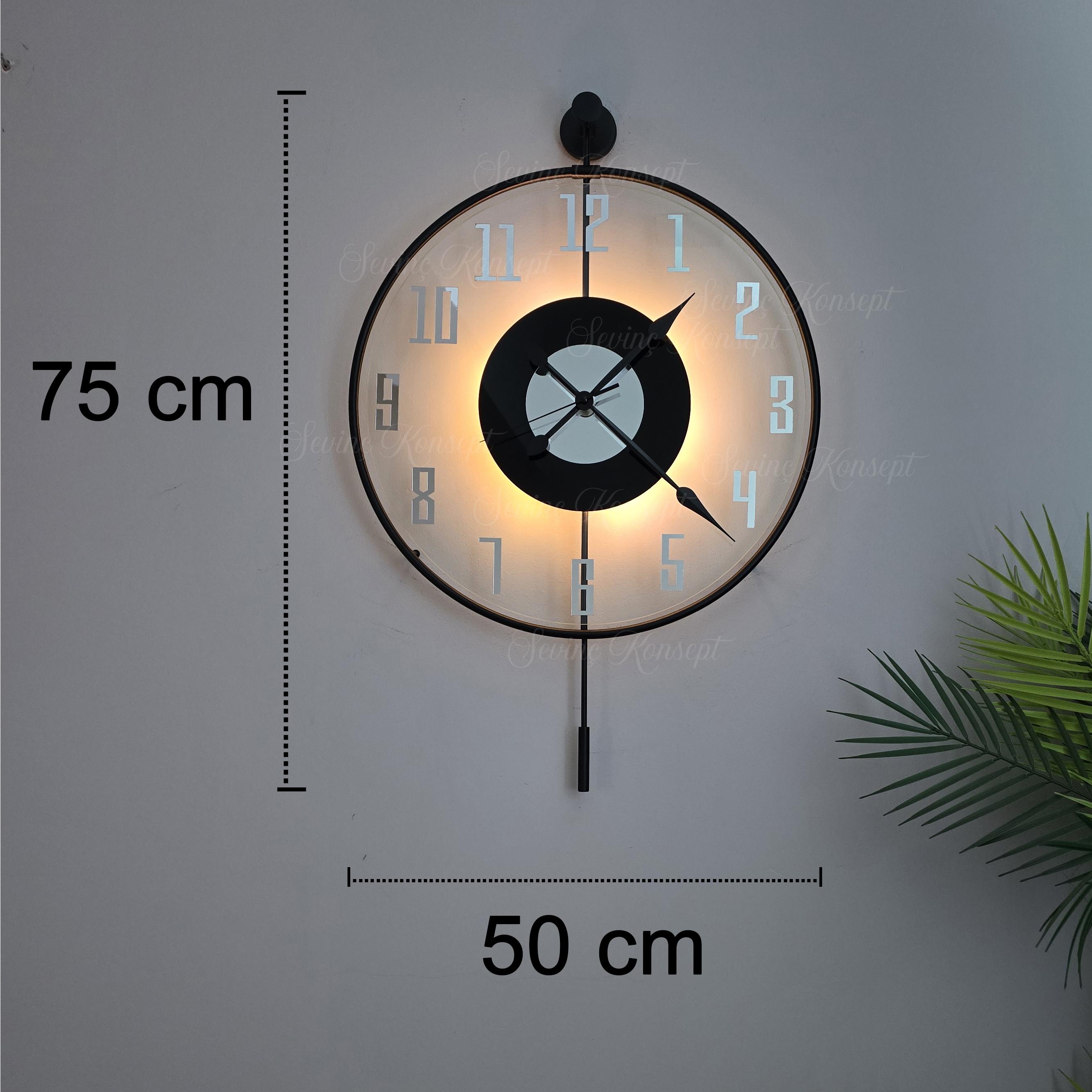50x75 cm boyutlarındaki bu duvar saati, geniş yüzeyiyle mekanınıza estetik bir dokunuş katar.