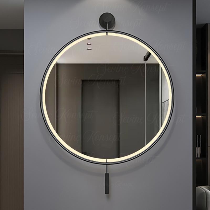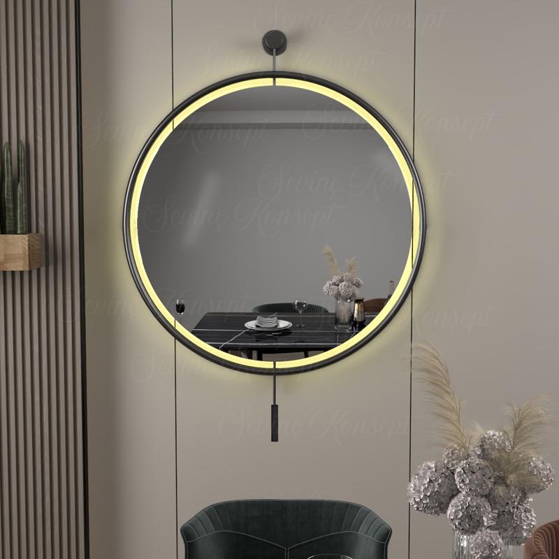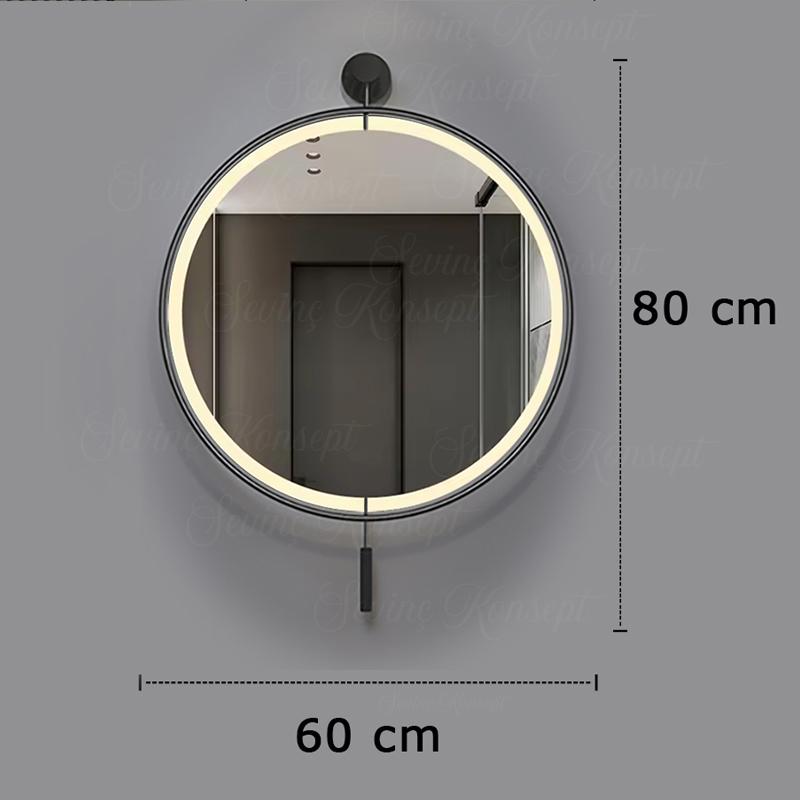 LED li İzmir Ayna SİYAH 60 cm Dekoratif Antre Hol Koridor Duvar Salon Mutfak Banyo Wc Ofis Aynası 60 cm ;