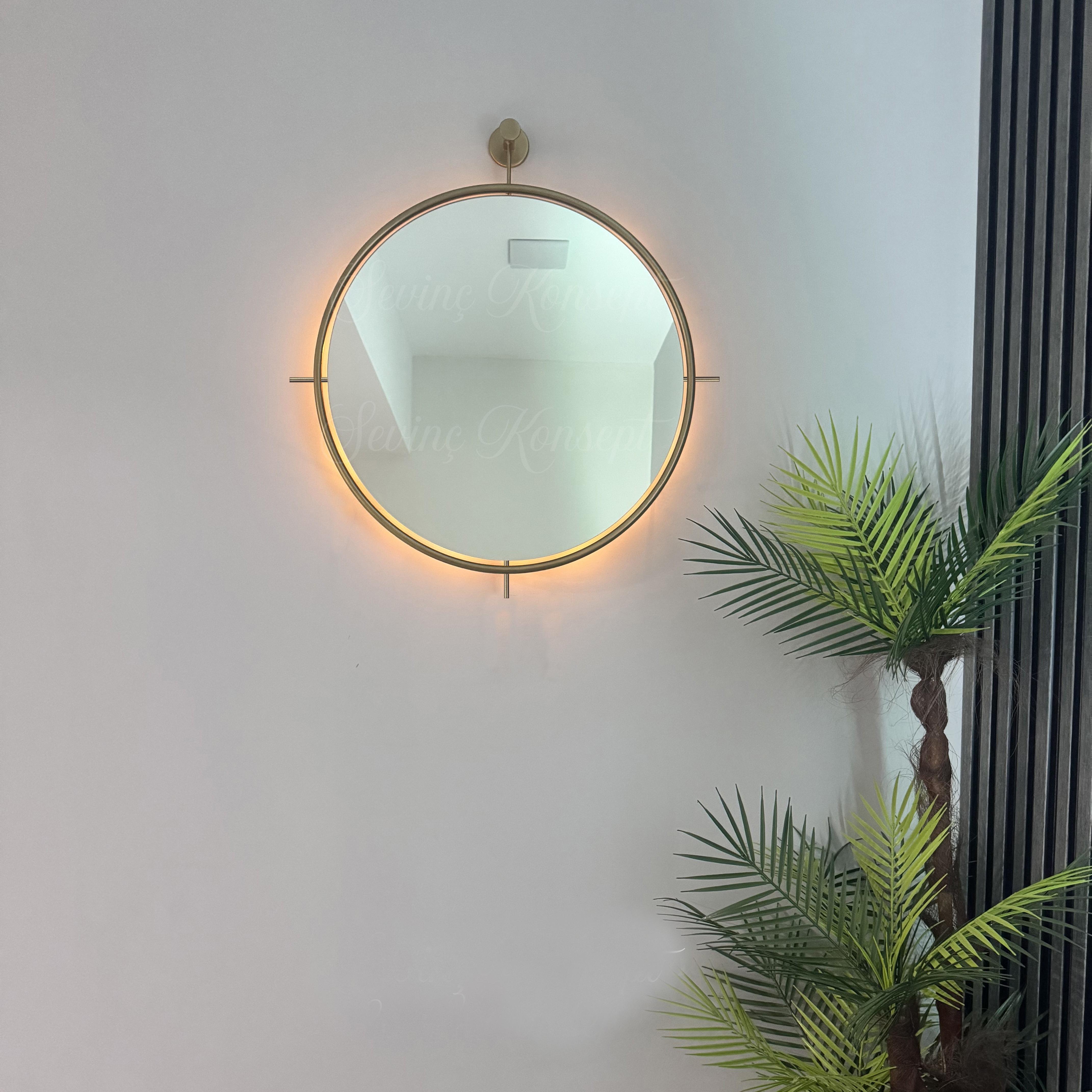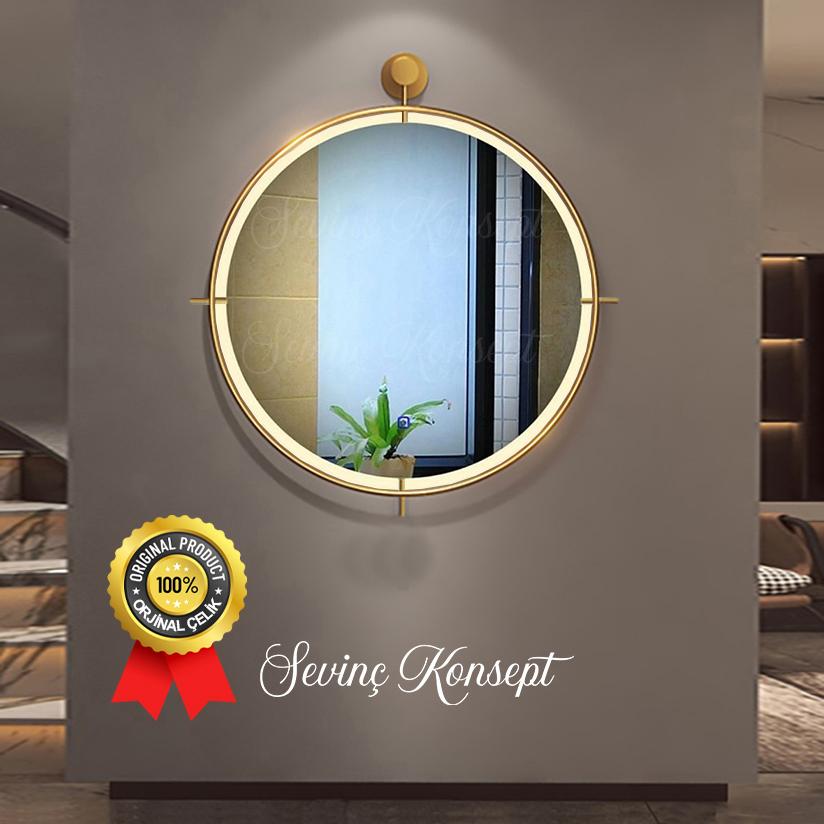 LED li Simirna Ayna GOLD 60 cm Dekoratif Antre Hol Koridor Duvar Salon Mutfak Banyo Wc Ofis Aynası 60 cm ;