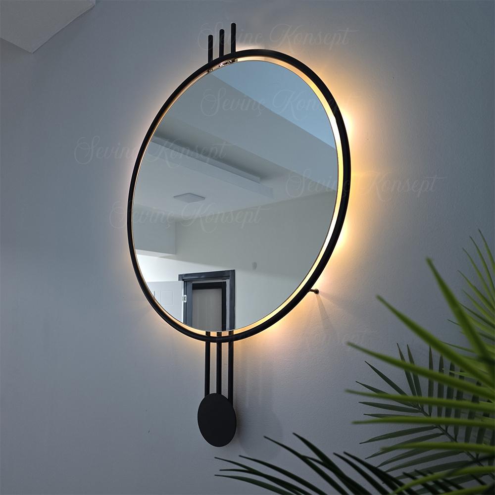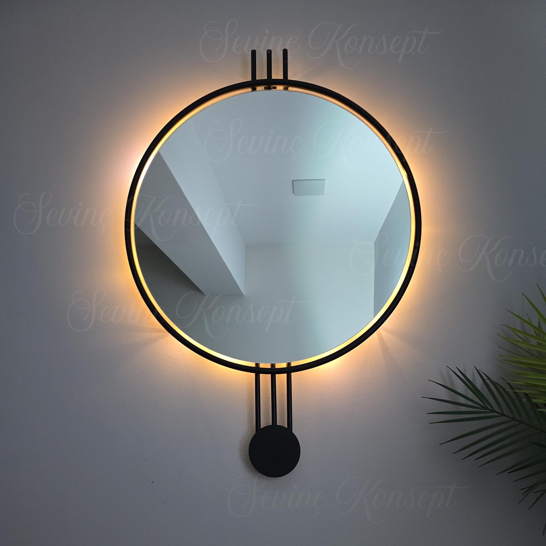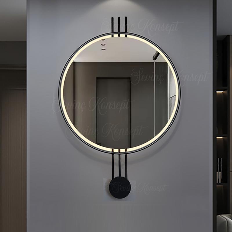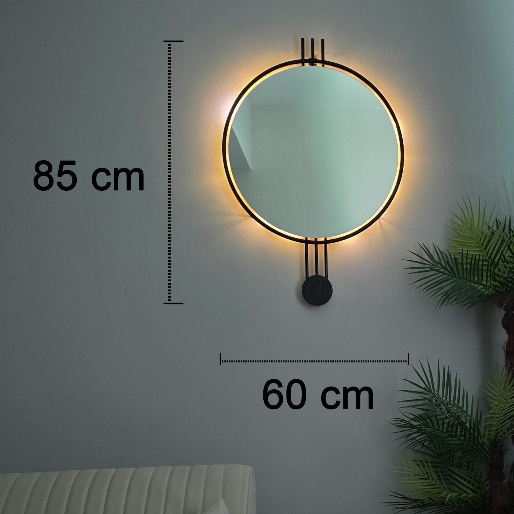LED li AMEDİ SİYAH 60 cm Dekoratif Antre Hol Koridor Duvar Salon Mutfak Banyo Wc Ofis Aynası ;