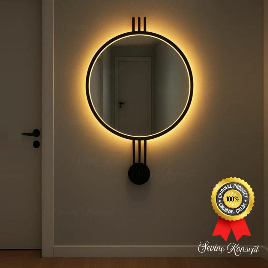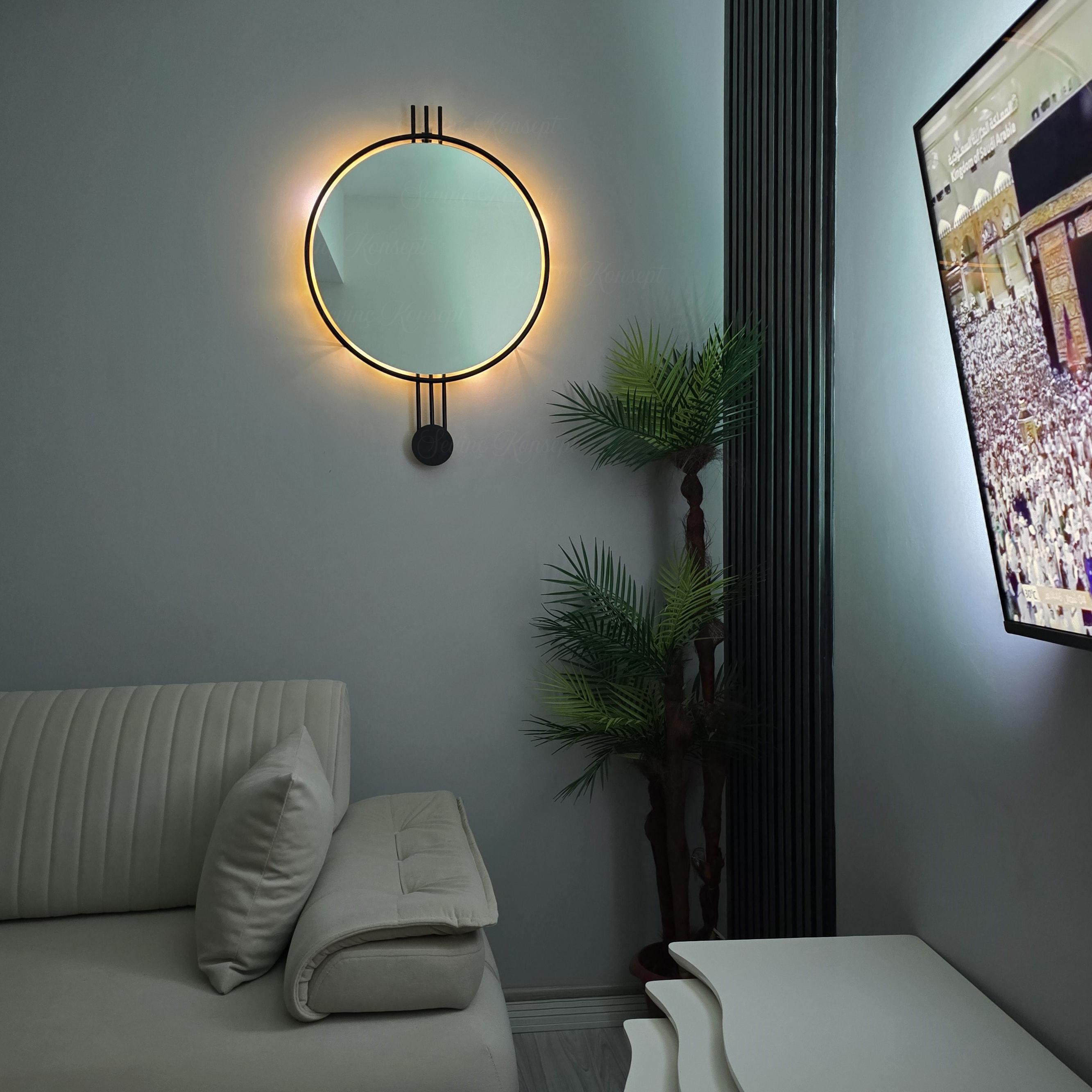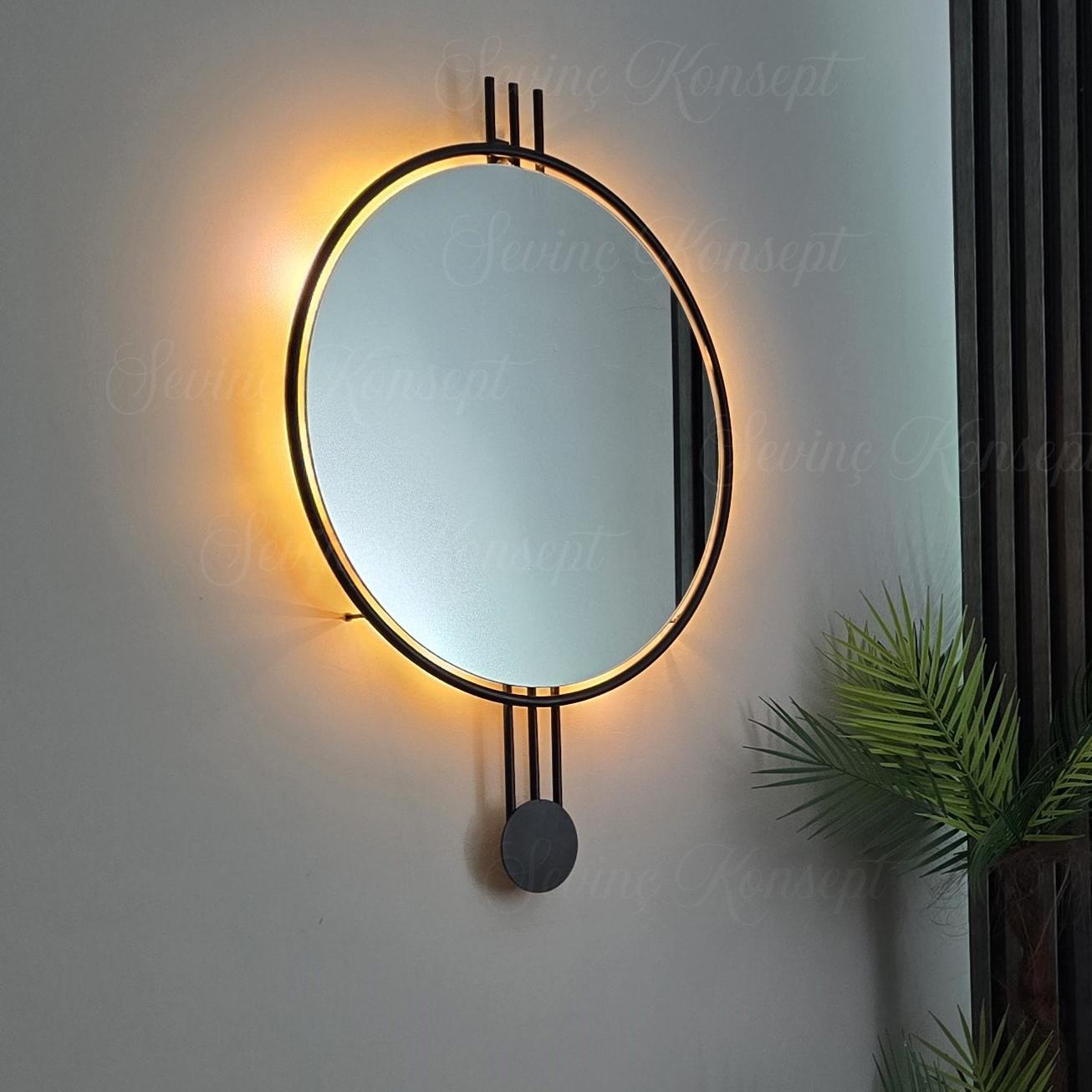 LED li AMEDİ SİYAH 60 cm Dekoratif Antre Hol Koridor Duvar Salon Mutfak Banyo Wc Ofis Aynası ;