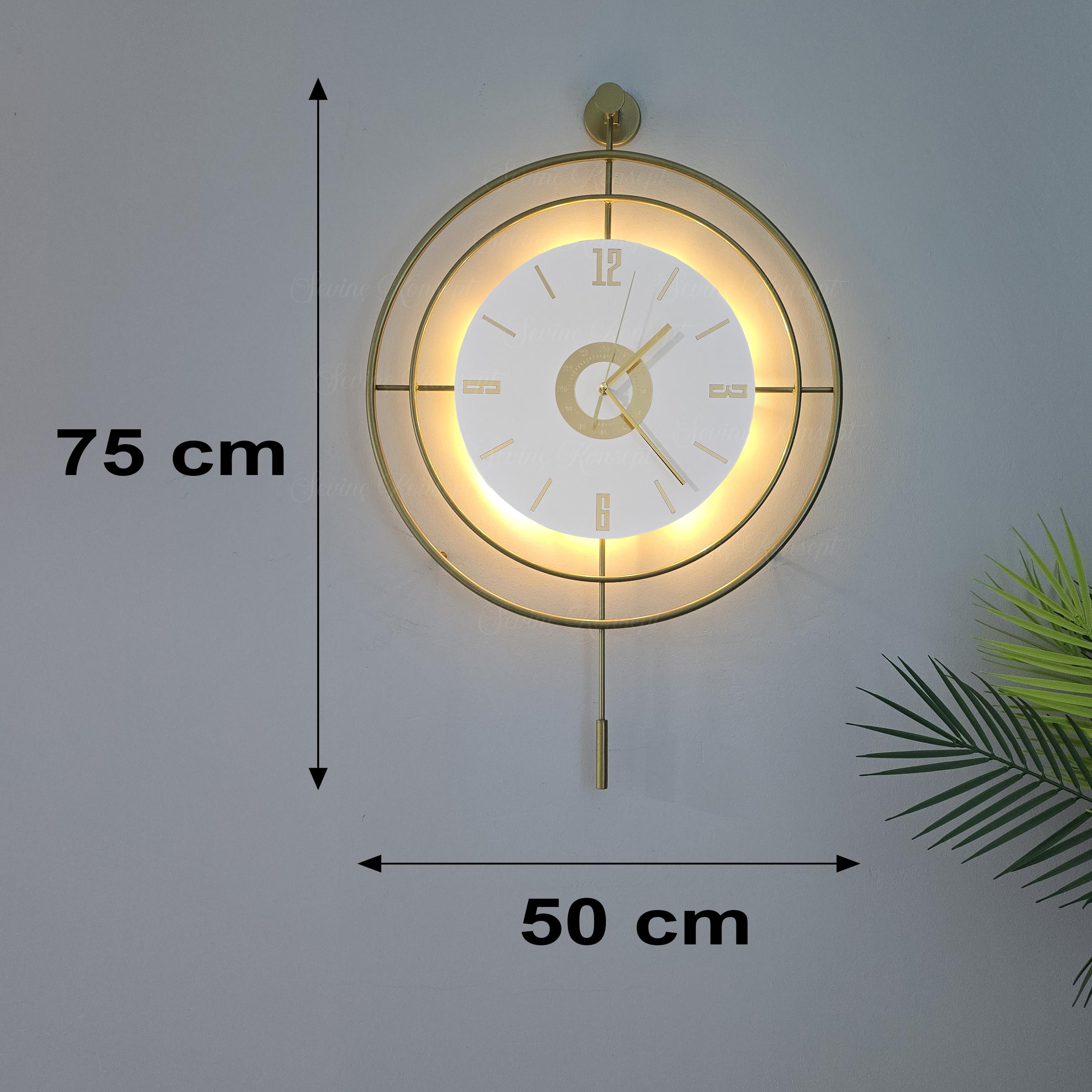 Led'li Gold Target Kristal (BÜYÜK BOY 50 X 75 Cm), Modern Dekoratif Sarkaçlı Metal Duvar Saati