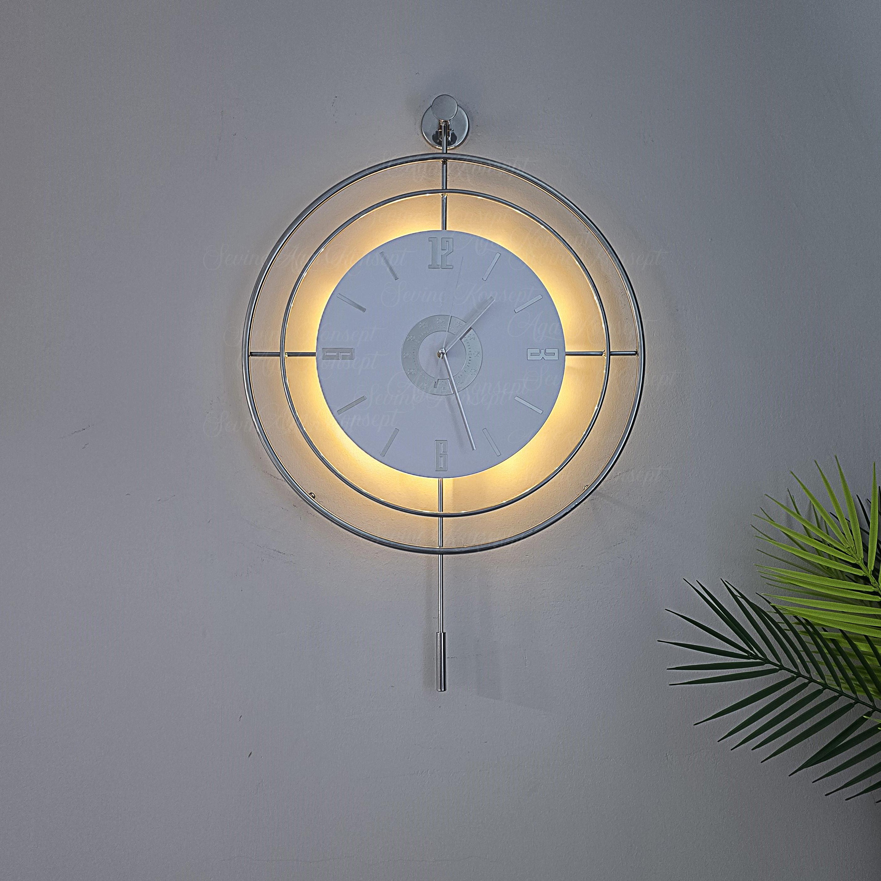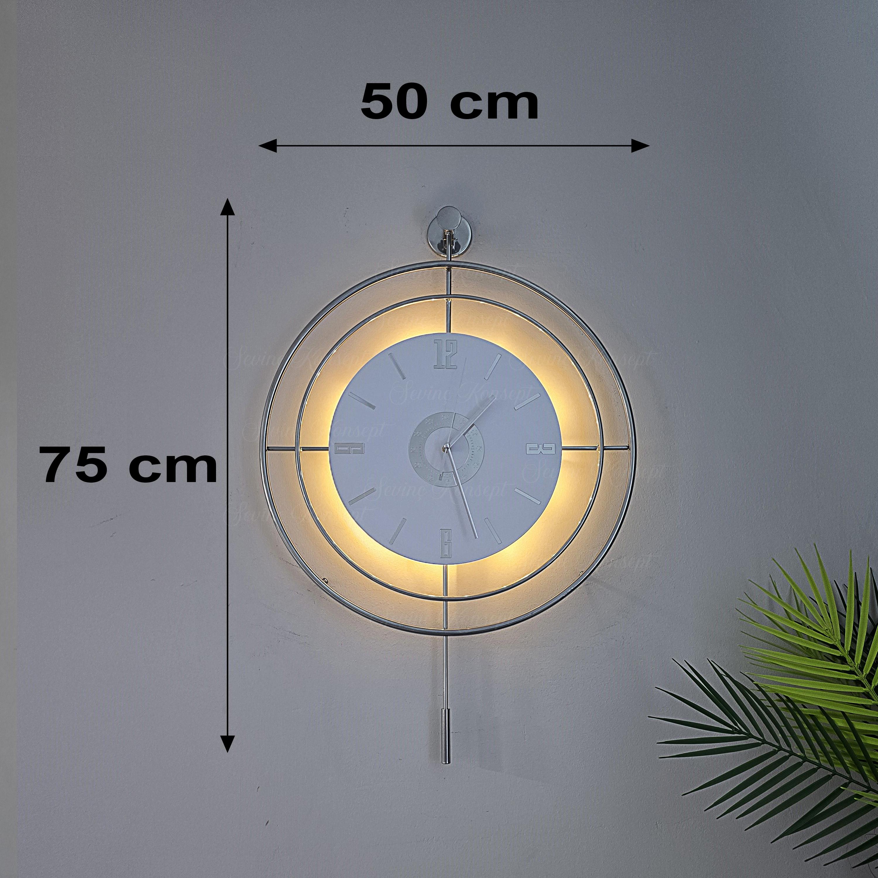 50 cm çapındaki geniş ekranı ile zamanı kolayca okuyabilirsiniz; 75 cm yüksekliği ise duvara rahatça monte edilebilir.