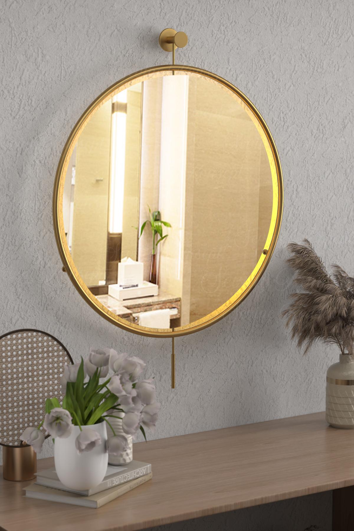 LED li İzmir Ayna GOLD 60 cm Dekoratif Antre Hol Koridor Duvar Salon Mutfak Banyo Wc Ofis Aynası 60 cm ;