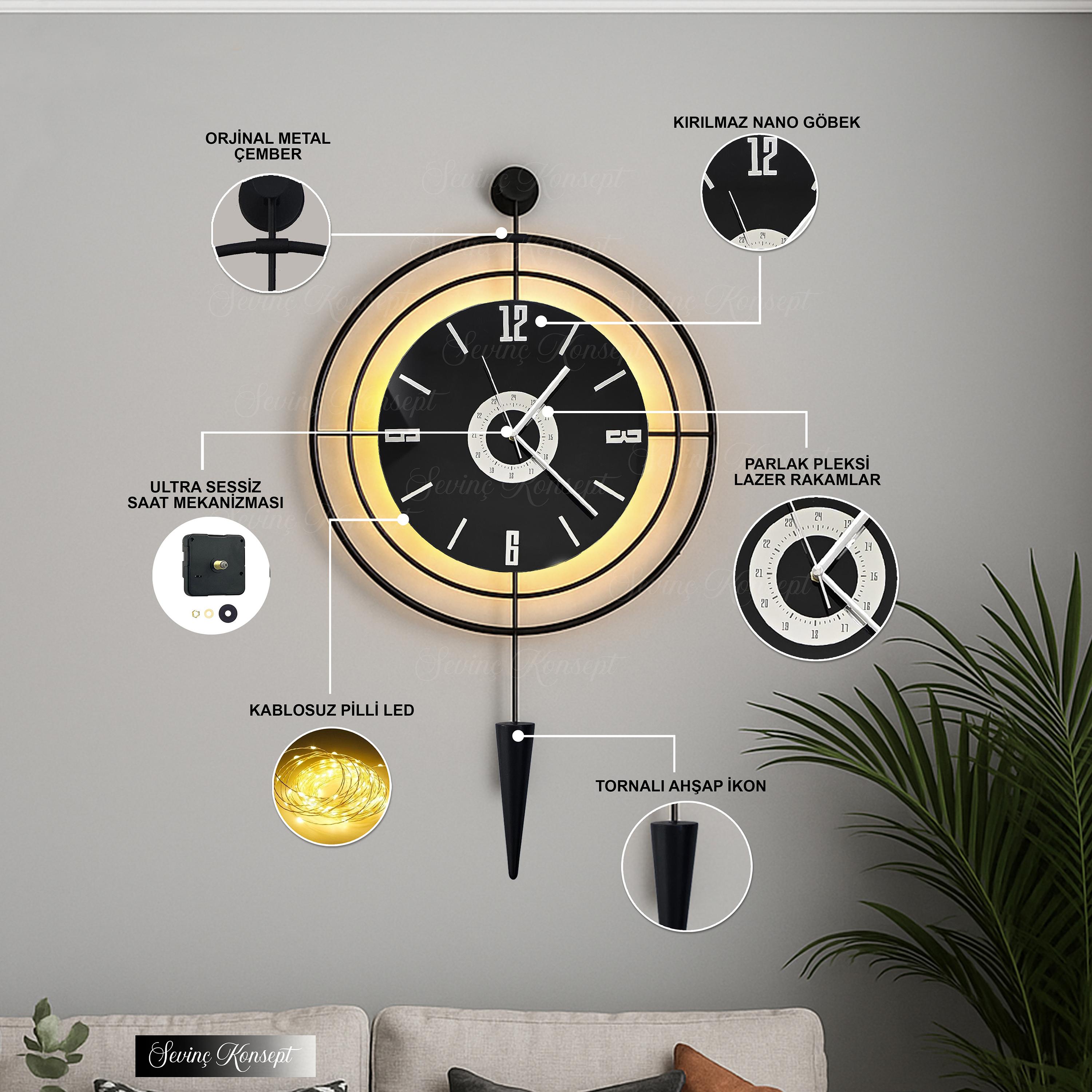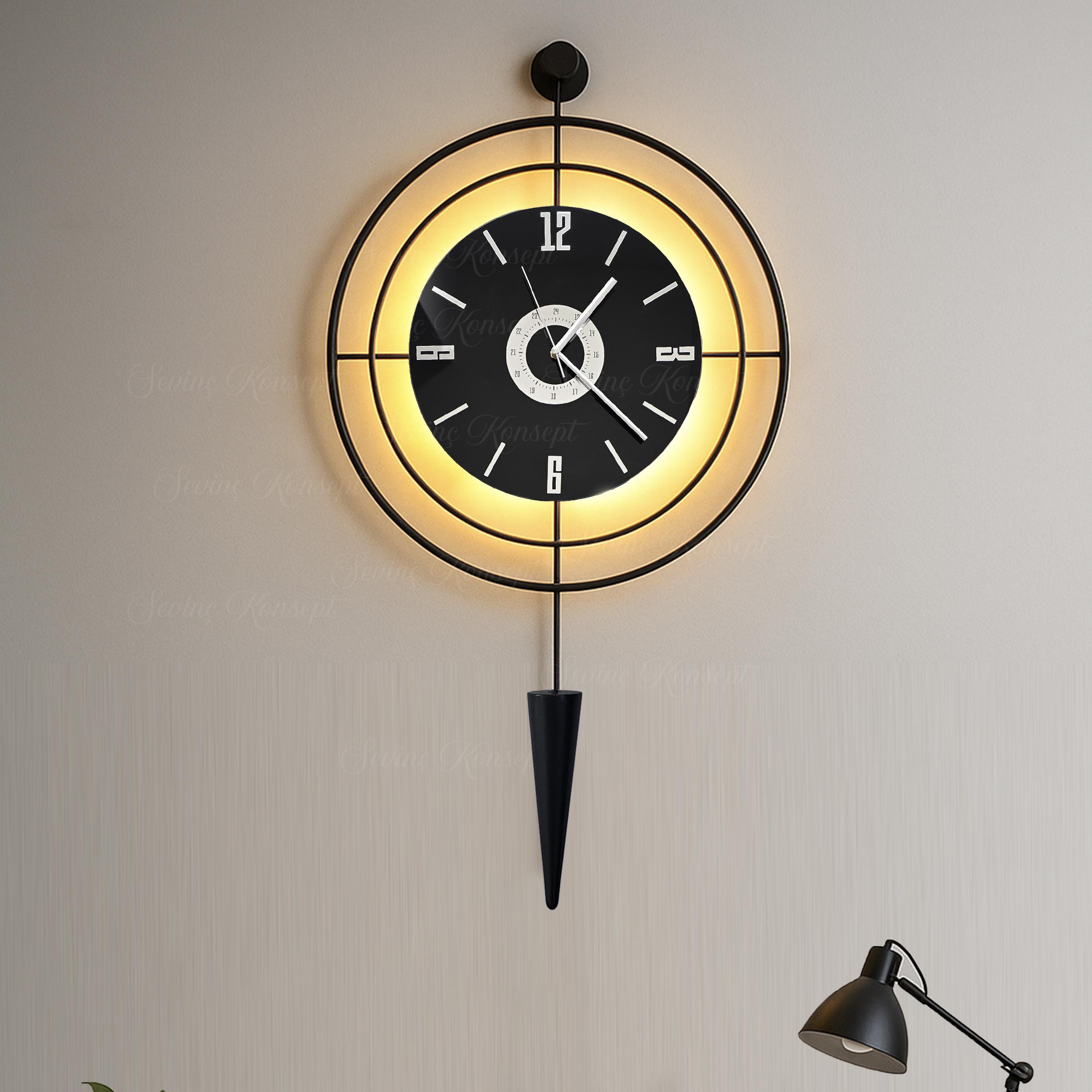 Led'li SİYAH Target Pendulum NERO 24 (Büyük Boy 50*90 cm) Dekoratif Metal Duvar Saati