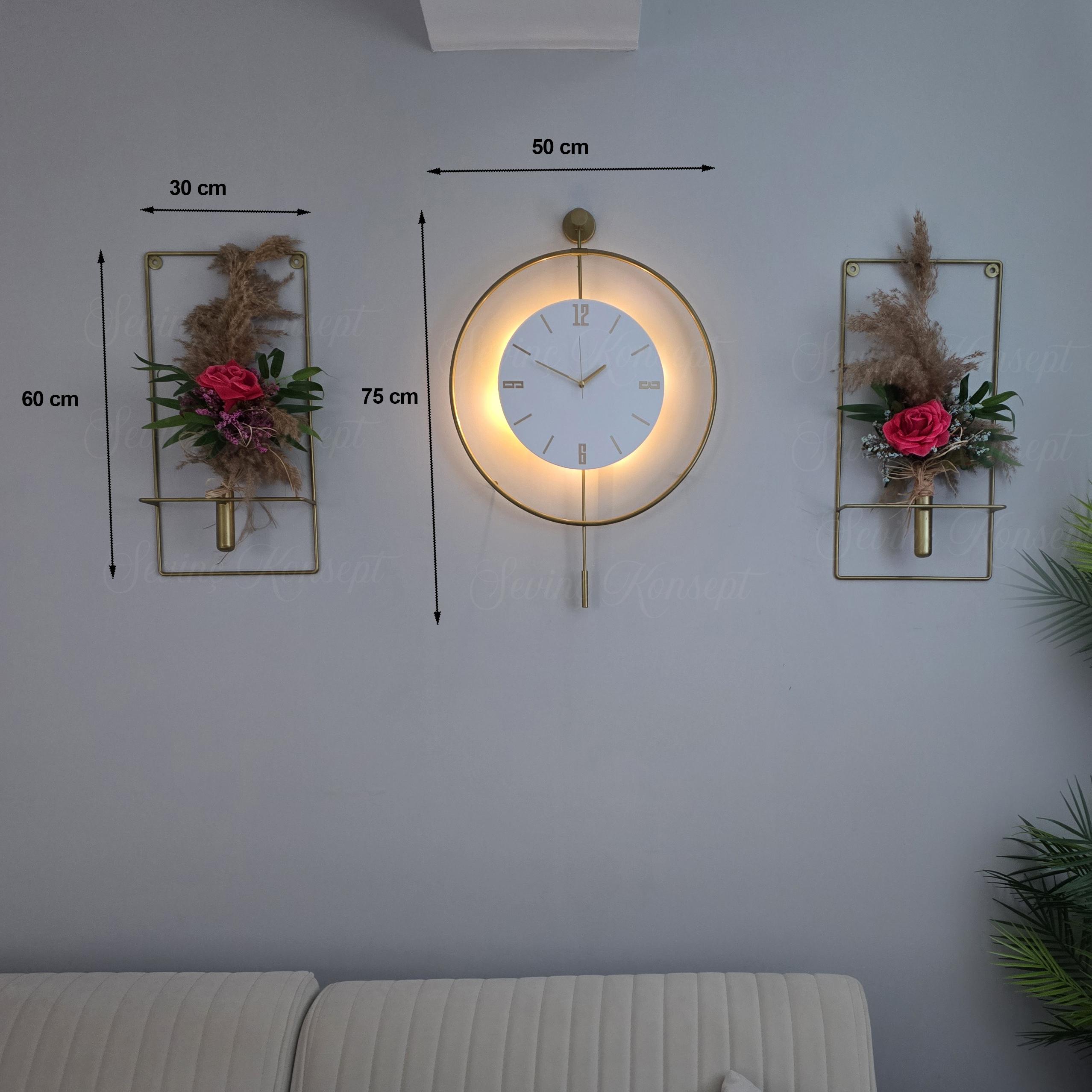 Bir büyük Saat ve İki Adet Metal Çiçeklik, Toplamda 3 Parça gönderilmektedir